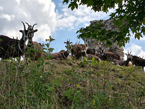 Seit Anfang Juni 2024 weidet wieder eine Gruppe von 11 Ziegenmüttern mit Ihren 20 Kitzen auf der Burg Kallmünz.